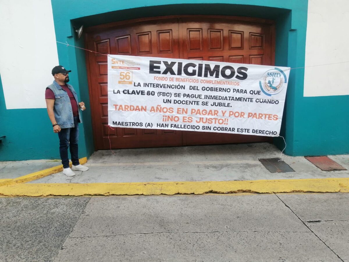 Xalapa, Ver.-  Nuevamente maestros jubilados tomaron este jueves por la mañana las instalaciones del Seguro Social de los Trabajadores de la Educación del Estado de Veracruz (SSTEEV), ante la falta de respuesta a sus exigencias por el pago inmediato del Fondo de Beneficios Complementarios (FBC), también conocido como clave 80.
