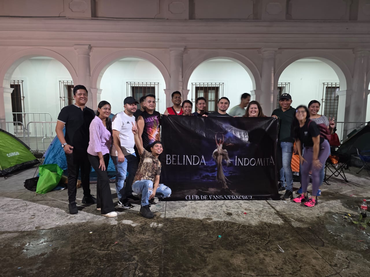 El Club de Fans oficial de Belinda en Veracruz acampó la noche de este jueves en los bajos del Palacio Municipal, para estar en primera fila durante su concierto que se realizará este viernes por la noche dentro de los festejos de las fiestas de Santa Ana.