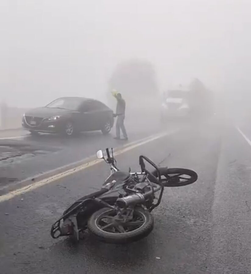 La densa niebla provocada por el frente frío que atraviesa la región ocasionó un accidente la mañana de este martes en la carretera libre Xalapa–Perote, a la altura del municipio de Acajete.