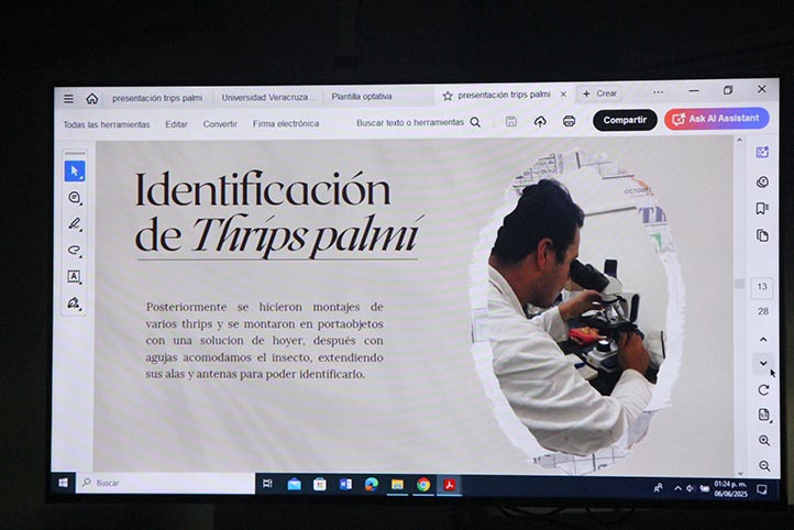 Lo anterior, al presentar los resultados de la investigación intitulada “Identificación en Thrips palmi que afecta el cultivo de sandía en Piedras Negras, Veracruz”, durante el Primer Foro de Optativas Terminales organizado por dicha entidad académica.