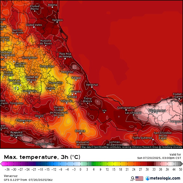 Los modelos de pronóstico resuelven que en los siguientes siete días en el estado de Veracruz, la temperatura media será dentro o por arriba de la climatología y la lluvia acumulada pudiera ser por abajo de la media.