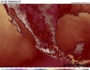 En las siguientes 24 horas, la probabilidad de lluvias y tormentas disminuye en todo el país y sólo se pronostican eventos aislados en el centro y sur con los máximos acumulados en el valle de México, sectores de Puebla, Oaxaca y Chiapas. El resto del país con baja o nula probabilidad de precipitaciones. Con respecto a la temperatura máxima, se espera que aumente gradualmente en todo el país, con los valores más altos en Baja California, Baja California Sur, Sonora, Sinaloa, Nayarit, Jalisco, Colima, Michoacán, Guerrero y costas de Oaxaca y Chiapas. Por otra parte, se prevé que la temperatura mínima aumente en gran parte del país y presente los valores más bajos en el oeste de Chihuahua, Durango, Zacatecas, oeste de San Luis Potosí, sur de Nuevo León, norte de Guanajuato, Tlaxcala, Estado de México, Hidalgo, norte y este de Puebla y montañas de Veracruz. Con relación al viento, en el litoral del golfo de México y noroeste del Caribe, el viento dominante será del sur, sureste, este y noreste de 20 a 35 km/h y rachas de 30 a 45 km/h. En los estados del Pacífico se prevé viento del noroeste de 20 a 35 km/h y norte violento superior a 80 km/h en el istmo y golfo de Tehuantepec.