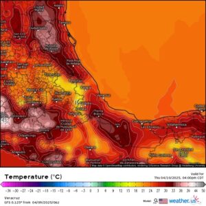 En las próximas 24 horas se tendrá probabilidad baja de lluvia en el estado de Veracruz, excepto en los límites con el estado de Puebla, donde se pueden presentar eventos aislados y ligeros. Los valores de la temperatura máxima aumentan ligeramente en comparación al día de ayer, persistiendo ambiente fresco a frío por la noche a madrugada con probabilidad de heladas en partes altas. El viento dominante en la costa será del noreste, este y sureste de 20 a 35 km/h. Se recomienda continuar con las precauciones y seguir las indicaciones de las autoridades de protección civil.