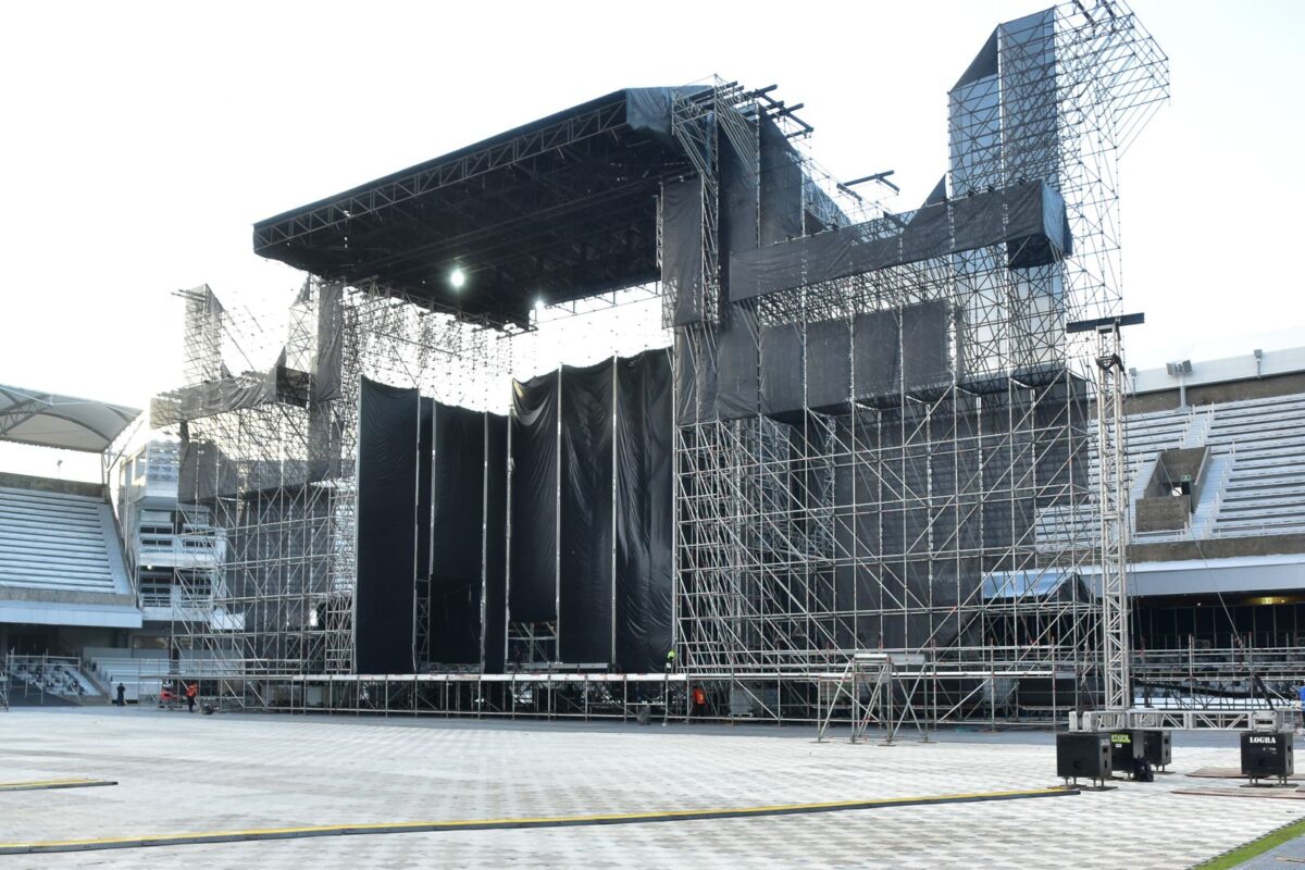 El señor Darío de León confirmó que la gira mundial “Las Mujeres Ya No Lloran World Tour” de Shakira se presentará en dicho recinto este miércoles 24 de septiembre, por lo que el imponente escenario ya comenzó a instalarse: