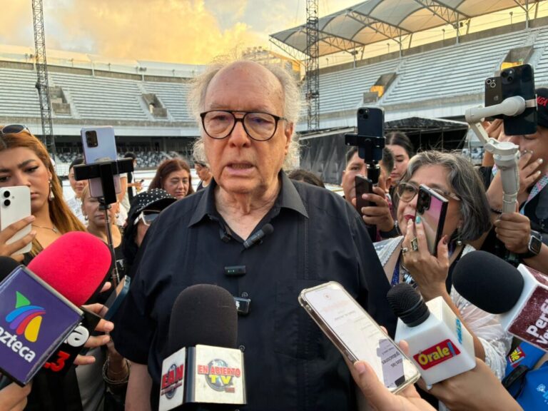 Darío de León, director de Genera Música, junto con personal de producción, ofrecieron un recorrido por diversos puntos del estadio Luis “Pirata” Fuente, en vísperas de la presentación de la cantante colombiana Shakira.