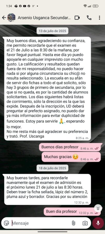 Tras publicar la lista de admitidos, el profesor Arsenio Uscanga, quien fue el docente que impartió el curso, les dijo a los padres de familia afectados que no todos pudieron ingresar debido a que el director y subdirector habrían dado prioridad a sus recomendados.