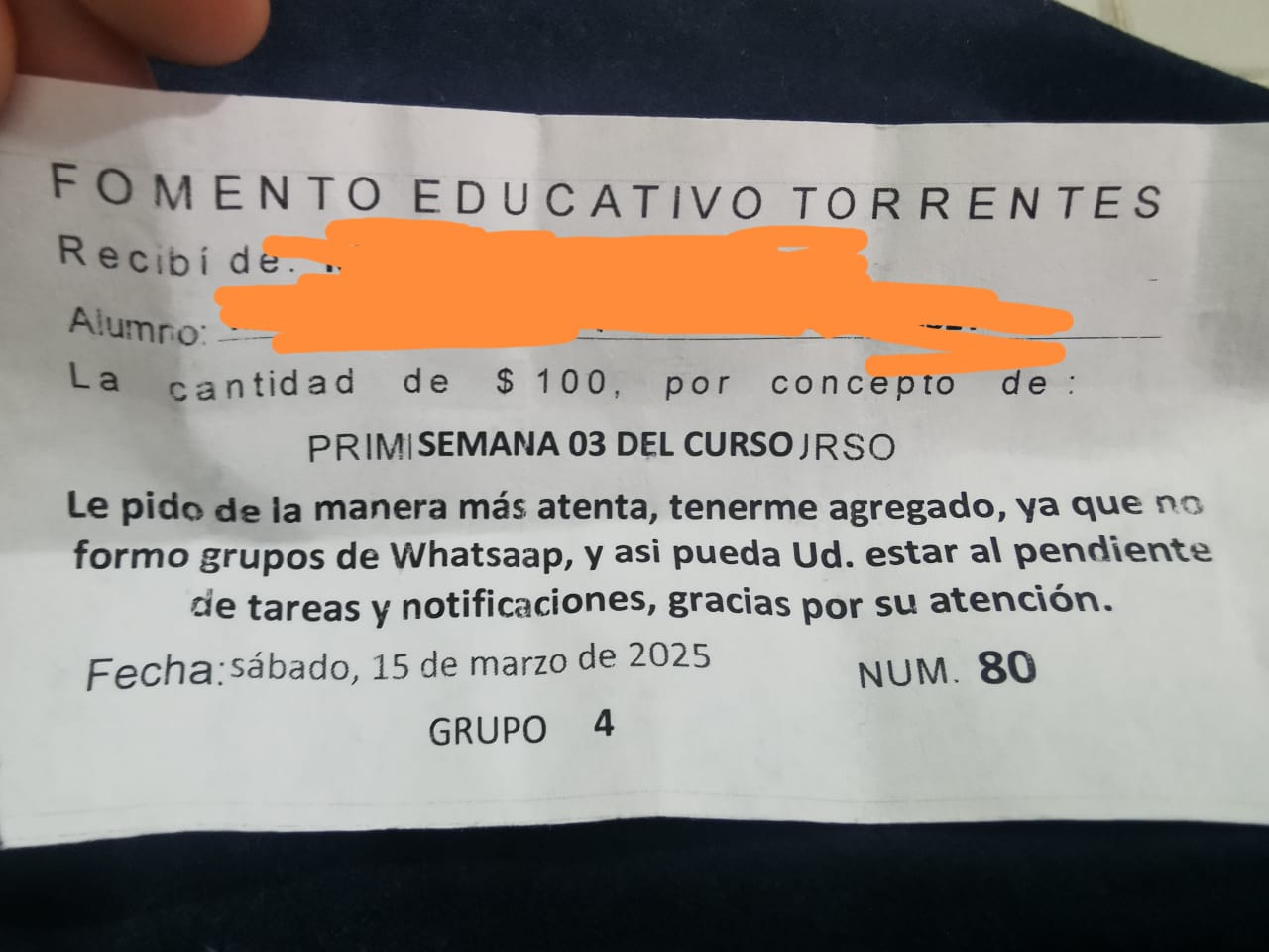 Durante 18 semanas, los padres pagaron 100 pesos cada sábado, además de 400 por la guía (es decir, 2 200 pesos por alumno). Cerca de 90 jóvenes se inscribieron, de los cuales 20 de ellos no fueron admitidos y se vieron perjudicados, pues ahora no encuentran un sitio donde continuar con sus estudios.