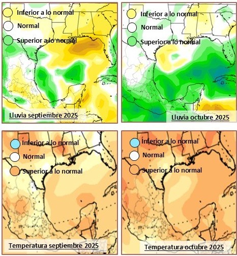 El escenario para septiembre-octubre es de ambiente ligeramente más caluroso de lo normal y lluvia acumulada igual o ligeramente superior al promedio.