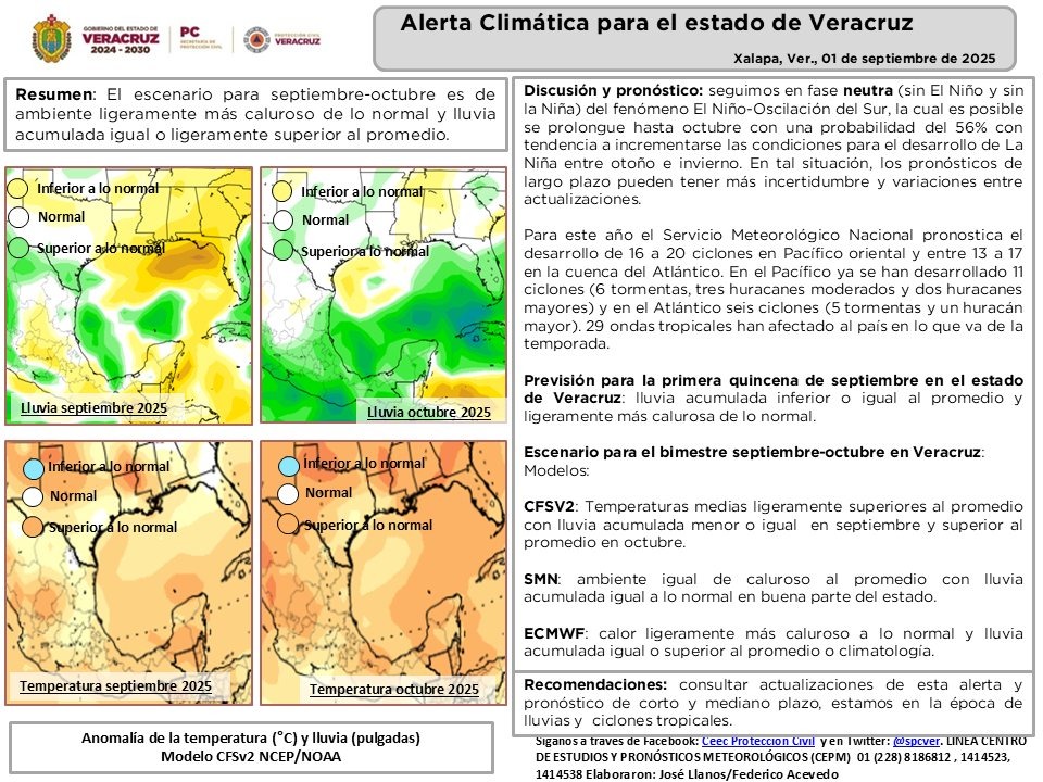 Escenario para el bimestre septiembre-octubre en Veracruz: