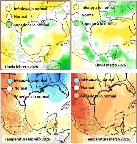 Xalapa, Ver., 27 de Enero de 2026.- El escenario para febrero-marzo de 2026, sugiere temperaturas ligeramente mayores al promedio y lluvias dentro de rangos normales o ligeramente superiores.