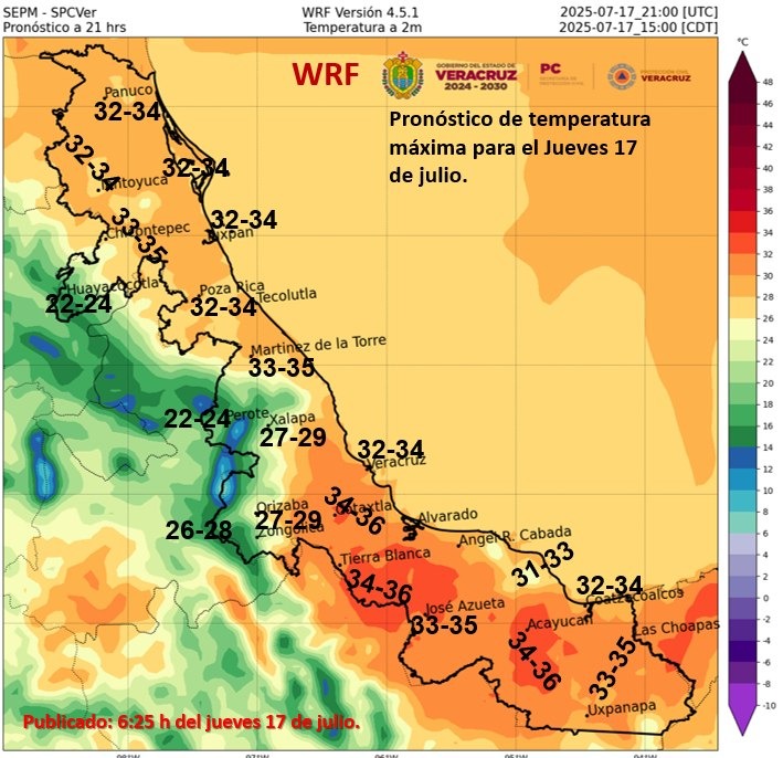 32.8/25.8 en Boca del Río.