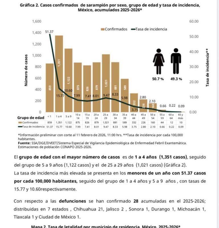 Veracruz,Ver. 12 de Febrero 2026.- Suman 24 casos acumulados de sarampión en Veracruz hasta ayer, 11 de febrero; con cifras de la secretaría de Salud federal.