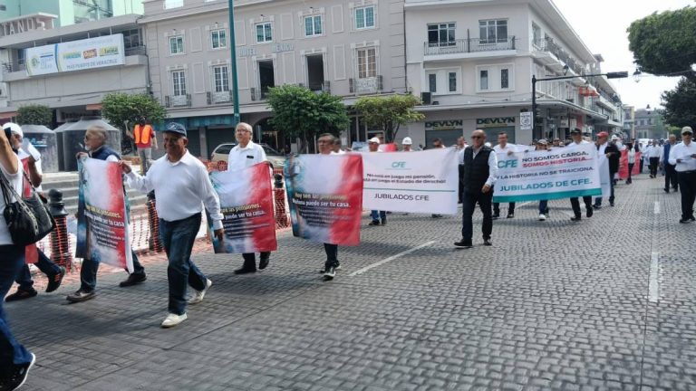 Xalapa, Ver.- Jubilados de la Comisión Federal de Electricidad (CFE) tomaron las calles de Xalapa, Veracruz, este martes 24 de marzo de 2026, para exigir respeto a sus derechos laborales en materia de jubilación. La movilización inició en las oficinas de la CFE y culminará en Palacio de Gobierno, donde solicitarán ser atendidos por autoridades estatales.