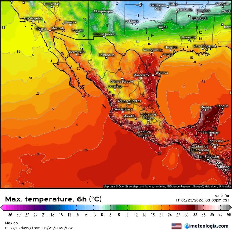 La temperatura máxima presentará ligera recuperación en el noreste y oriente del país; sin embargo, es posible un nuevo descenso de la temperatura diurna en el noroeste y norte del territorio nacional. Mientras tanto, los valores más altos continuarán registrándose en las costas de Nayarit, Jalisco, Colima, Michoacán, Guerrero, Oaxaca y sur de Chiapas, así como en Campeche, Yucatán y Quintana Roo.