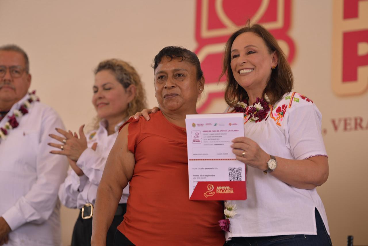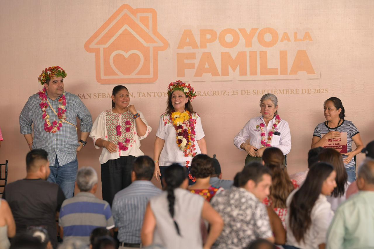 La gobernadora Rocío Nahle García encabezó en la comunidad de San Sebastián la entrega del programa Apoyo a la Familia, mediante el cual el Sistema para el Desarrollo Integral de la Familia (DIF Estatal) distribuyó 593 apoyos a personas en situación de vulnerabilidad de 12 municipios.