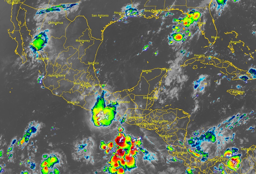 En las siguientes 24 horas, se prevé probabilidad de lluvias en el noroeste y del centro al sur del país con los acumulados más importantes: en el occidente de Chihuahua, oriente de Sinaloa, occidente de Durango, Nayarit, Jalisco, Colima, Michoacán, Guerrero, sur de Zacatecas, Oaxaca, Chiapas, Ciudad de México, Estado de México, Tlaxcala, Puebla, Morelos y Yucatán. Los valores de la temperatura máxima con poco cambio en comparación al día de ayer, con las más altas en Península de Baja California, Sonora, norte de Sinaloa, norte de Chihuahua, Coahuila, Nuevo León, Tamaulipas, Tabasco, Campeche y Yucatán. Los valores de la temperatura mínima también con poco cambio, registrándose los valores más bajos en el suroeste de Chihuahua, sierra de Durango y Zacatecas, Ciudad y Estado de México, Tlaxcala, sur de Hidalgo y zonas montañosas de Puebla y Veracruz. El viento en el litoral del golfo de México y noreste del Caribe será de dirección del noreste, este y sureste de 20 a 35 km/h con rachas de 45 a 60 km/h en costas de Tamaulipas, Campeche y Yucatán. En el litoral del Pacífico, el viento será del noroeste, oeste, suroeste de 20 a 35 km/h con rachas de 40 a 55 km/h en las costas de la Península de Baja California.