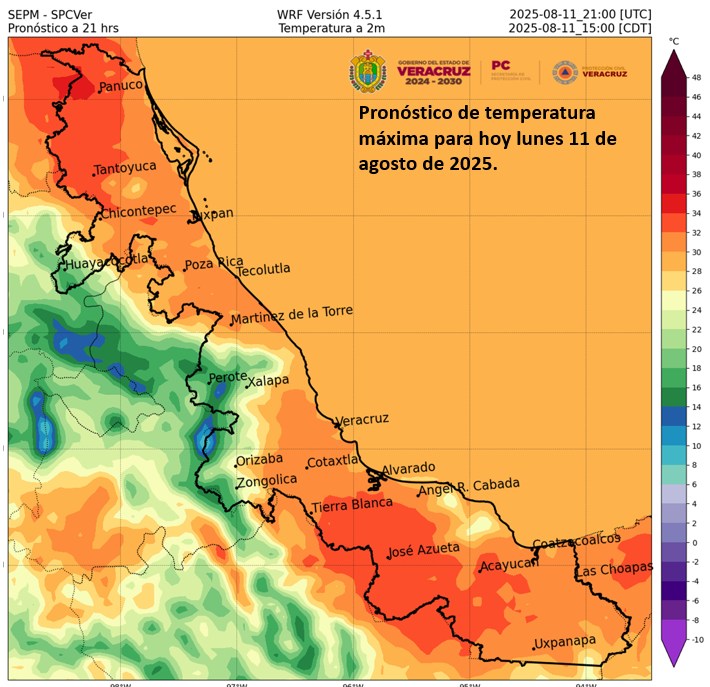 Los modelos de pronóstico indican un escenario para los próximos siete días en el estado de Veracruz de: ambiente más caluroso y déficit de lluvia acumulada.