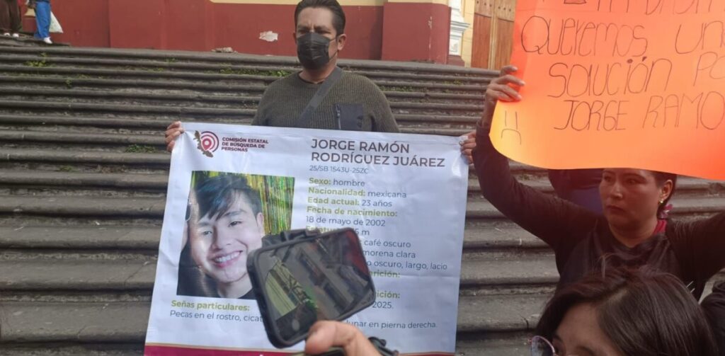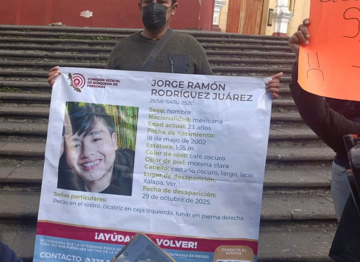 Xalapa, Ver.-  La señora Marilú Juárez Martínez y Óscar Rodríguez Romero, madre y hermano del joven desaparecido de nombre Jorge Ramón Rodríguez Juárez desaparecido el 29 de octubre del 2025; piden apoyo a la gobernadora para que sea localizado con vida; narra la mamá que salió a vender un teléfono celular a la plaza de Urban Center y de ahí ya no regresó.