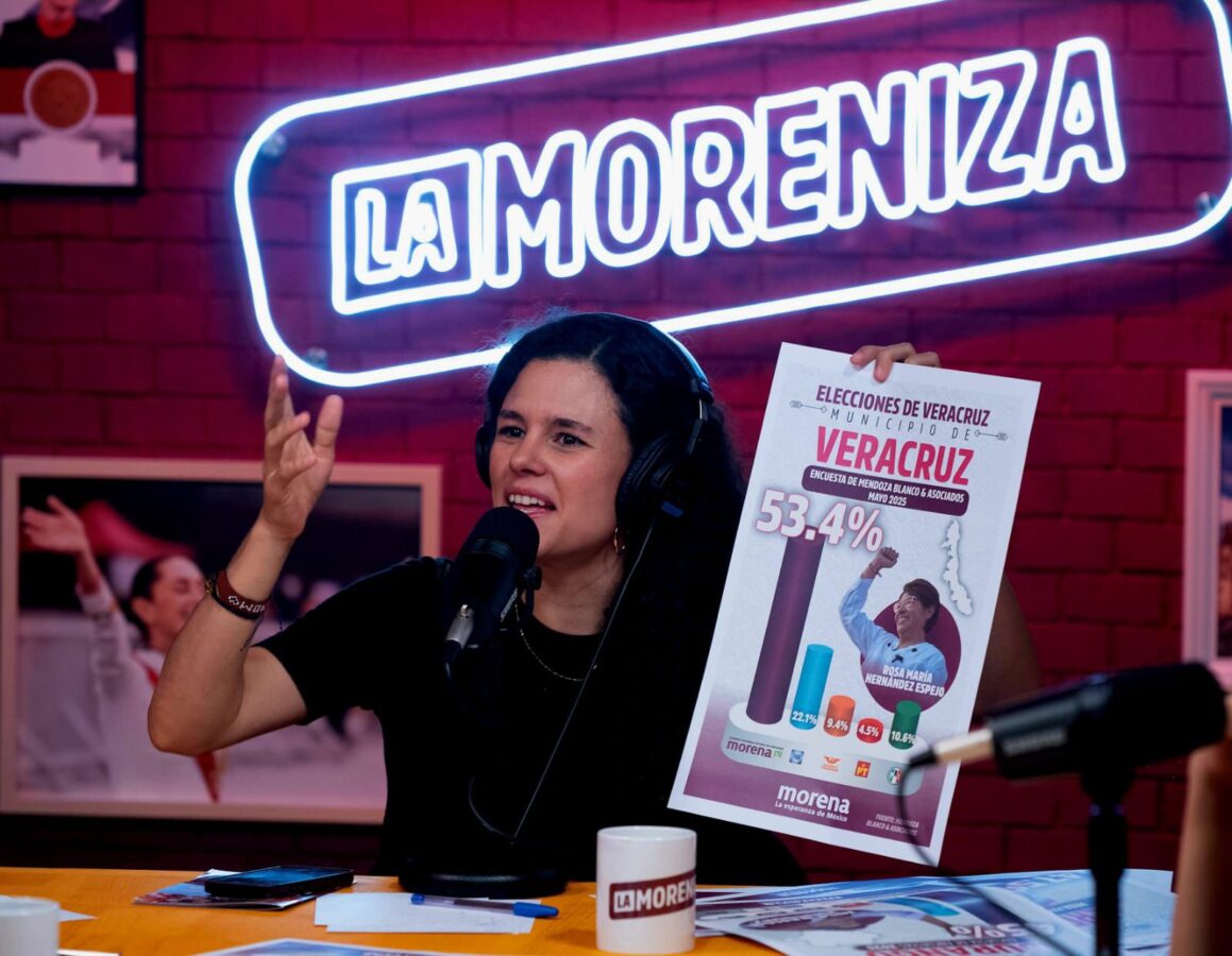 Veracruz, Ver.– Durante una reciente emisión del podcast La Moreniza, la presidenta nacional de Morena, Luisa María Alcalde Luján, destacó los resultados de una encuesta que coloca a Rosa María Hernández Espejo con un 53 por ciento de las preferencias electorales rumbo a la alcaldía del puerto de Veracruz, una ventaja que calificó como “brutal”.