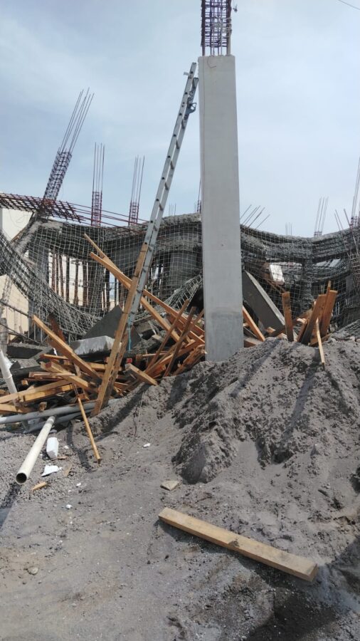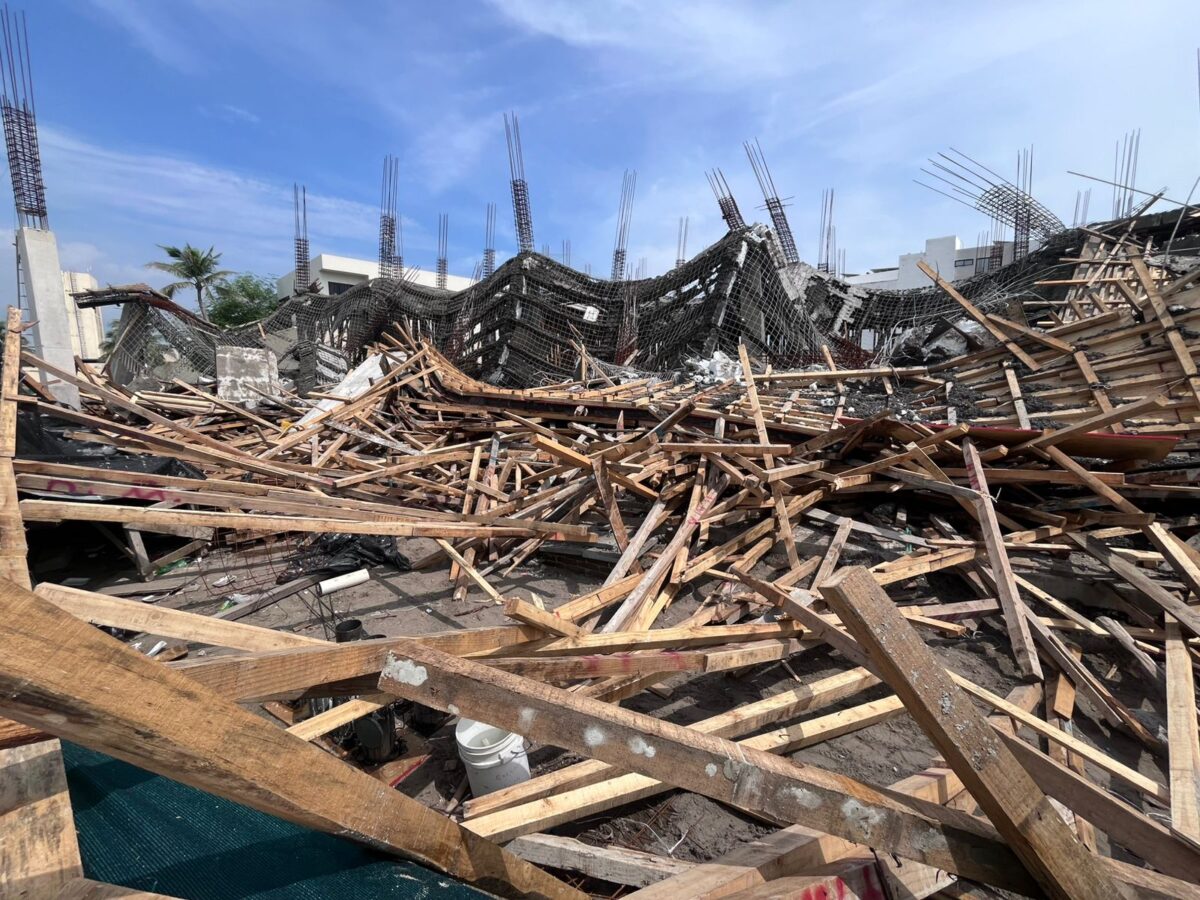 Ya durante la mañana de hoy los presentes señalaron que la cimbra comenzó a colapsar por el peso del cemento vertido y se vinieron abajo las columnas y la infraestructura de madera que sostenía parte del lugar.