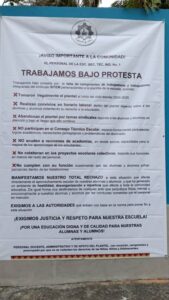 En la lona, enlistan una serie de situaciones y actividades que los trabajadores consideran que los afectan a ellos y a los alumnos del plantel.