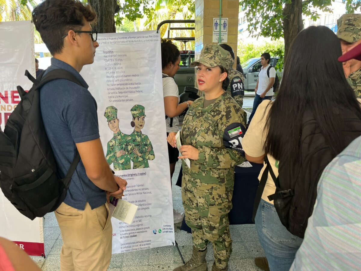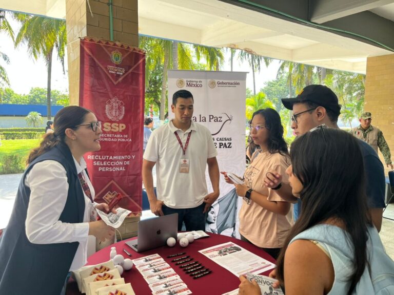 «Está el módulo de Sedena con vacantes para licenciados en psicología, para áreas de sanidad, de transmisiones, de infantería, para áreas de cocina, así como vacantes para la policía de proximidad. Tenemos también el módulo de gobierno del estado con las vacantes para personal operativo para la Policía Estatal, para el cual la convocatoria está aperturada todo el año para hombres y mujeres de 18 a 35 años de distintas entidades federativas, y como estudio mínimo toman el bachillerato. Tenemos también de Policía Naval con todos sus planteles de Infantería de Marina, licenciatura en medicina, enfermería, psicología, nutrición, radiología; y carreras como ingeniería naval, electrónica», expresó.