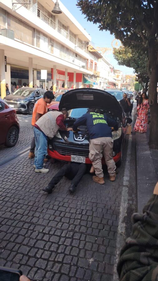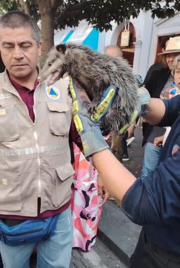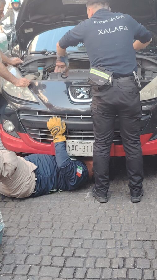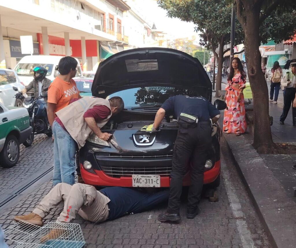 Xalapa, Ver.- La tarde de este jueves una llamada de auxilio a Protección Civil alertó de un incidente con un tlacuache atrapado en el motor de un auto en el centro de Xalapa.