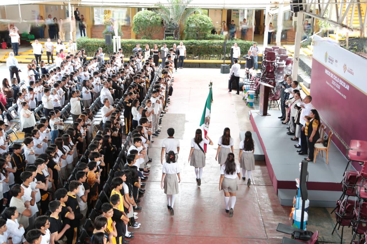 En el inicio del escolar 2025-2026, la Secretaría de Educación de Veracruz (SEV) dio la bienvenida a más de 2 millones de estudiantes y casi 137 mil docentes de nivel básico, donde destacó el trabajo en conjunto entre los gobiernos Federal y Estatal para que se aplique la gratuidad en todas las escuelas públicas del estado.