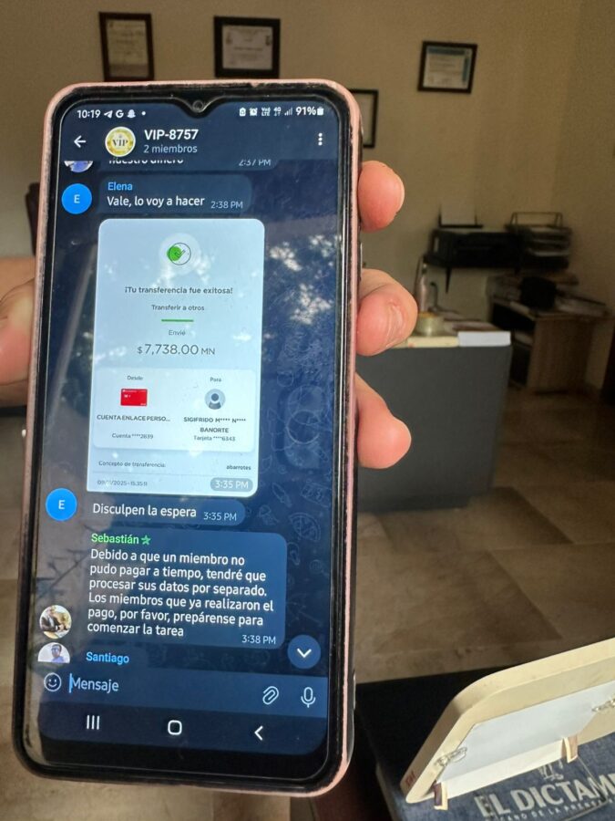 Al paso de un par de días, y al ver que aparentemente se trataba de algo seguro puesto que recibiría las transferencias por sus capturas de pantalla en tiempo y en forma, la afectada accedió a hacer una inversión de 10 mil pesos para entrar en lo que ellos consideran “un nivel superior”, sin embargo, en esta parte de la operación fue cuando ella perdió todo su dinero.