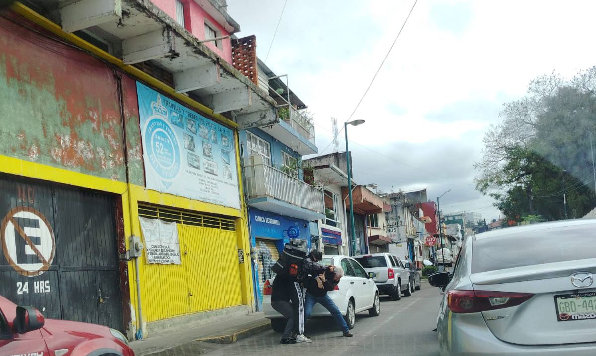 Se lían a golpes en centro de Xalapa por accident3 entre un Mazda y un motociclista