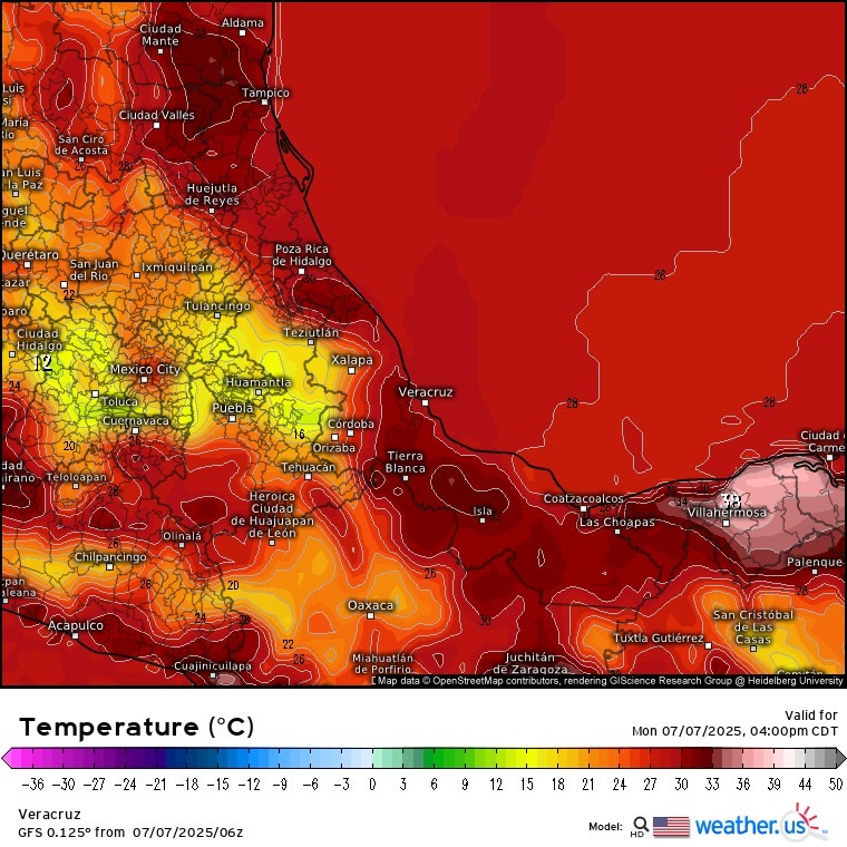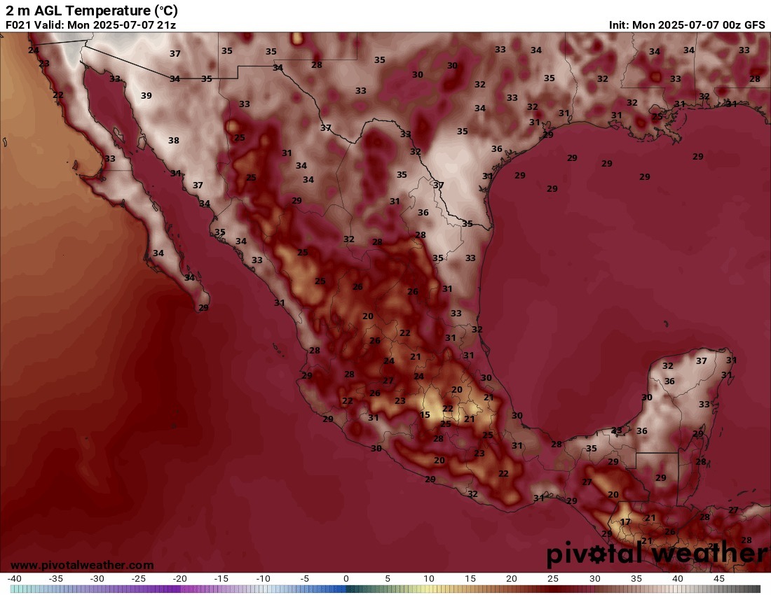 En las siguientes 24 horas se espera que la probabilidad mayor de lluvias esté presente en la mayor parte del país, con los máximos acumulados a lo largo de la Sierra Madre Occidental, Sinaloa, Durango, Zacatecas, Nayarit, Jalisco, Aguascalientes, Colima, Michoacán, Guerrero, Oaxaca, Chiapas, sur de Coahuila y Nuevo León, sureste de San Luis Potosí, sur de Veracruz, Tabasco y sectores de Yucatán y Quintana Roo. Por su parte, la temperatura máxima continuará en estados del noroeste, noreste y sureste, con los valores más altos en Baja California, Baja California Sur, Sonora, Sinaloa, norte de Chihuahua y Coahuila, Nuevo León, norte de Tamaulipas, Tabasco, Campeche, Yucatán y Quintana Roo.