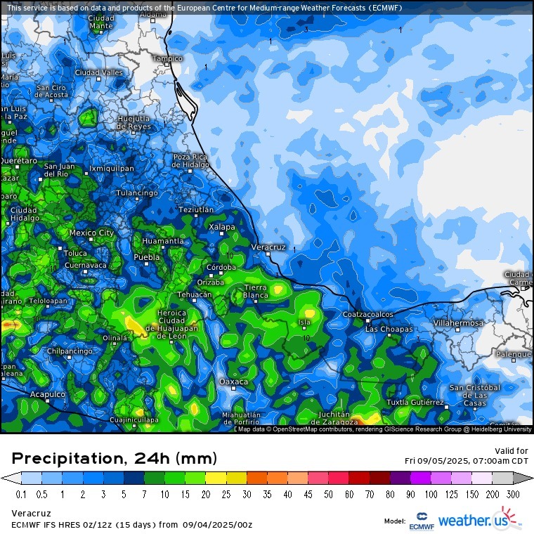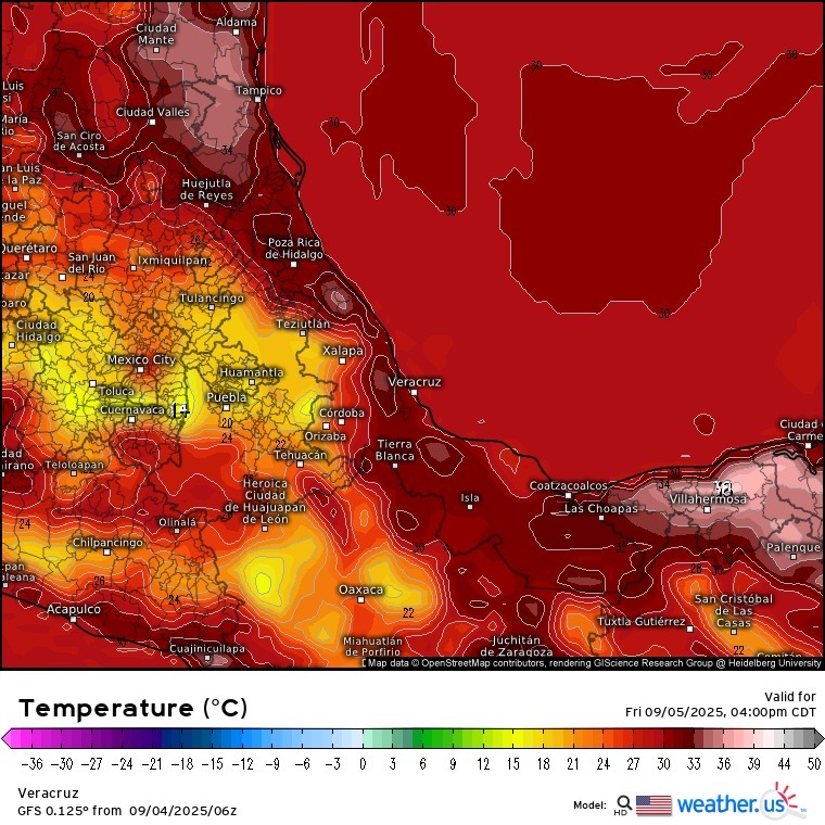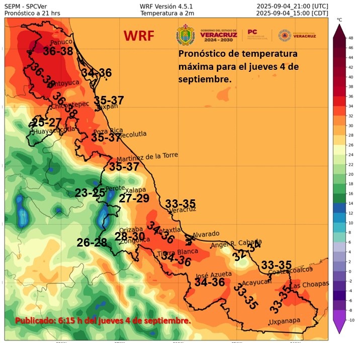 Los modelos de pronóstico indican que en el estado de Veracruz se tendría temperatura media igual o superior al promedio con déficit de lluvia acumulada, excepto en la zona norte, donde puede ser mayor.