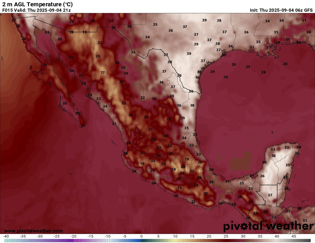 En las siguientes 24 horas se prevé potencial para lluvias y tormentas en gran parte del territorio nacional, con los acumulados más significativos en Baja California Sur y Sonora, siendo el siguiente en importancia el oeste de Chihuahua y Durango, Sinaloa, Nayarit, gran parte de Zacatecas, Jalisco, Michoacán, Guerrero, Oaxaca, Hidalgo, Aguascalientes, Guanajuato, Querétaro, Estado y Ciudad de México, Morelos, Tlaxcala, Puebla y montañas y sur de Veracruz. Con relación a las temperaturas máximas, se prevé que disminuyan en el noroeste y aumenten en el noreste y sureste del país, con los valores más altos en el norte y noreste de Coahuila, norte y centro de Nuevo León, Tamaulipas, Tabasco y entidades de la Península de Yucatán.
