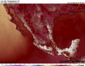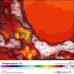 Regiones montañosas del centro: nublado a medio nublado, probabilidad de lluvias aisladas con algunas tormentas, generalmente por la tarde o noche. Acumulados estimados de 5 a 15 mm, siendo probables mayores a 20 mm de forma más dispersa. Nieblas o neblinas eventuales en partes altas por la noche y madrugada. Viento del este, sureste y noreste de 15 a 25 km/h con rachas de 35 km/h en el valle de Perote, mayores en zonas de posibles tormentas. Ambiente relativamente caluroso, fresco a relativamente frío por la noche y madrugada. Tmáx/Tmín. 25 a 28°C/16 a 19°C (menores en el valle de Perote).