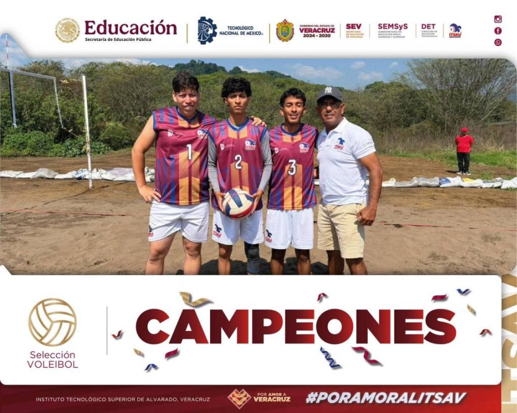 Veracruz, Ver.24 Abril 2026.- El equipo del Tecnológico de Alvarado (ITSAV) se coronó con paso firme en el voleibol de playa del selectivo estatal realizado en Huatusco, con lo cual accede al evento nacional.