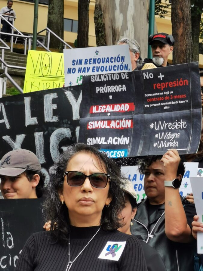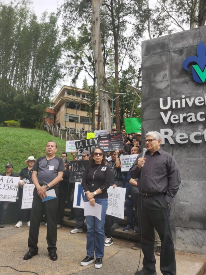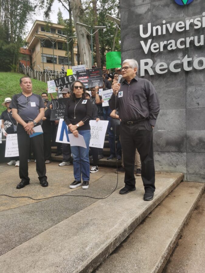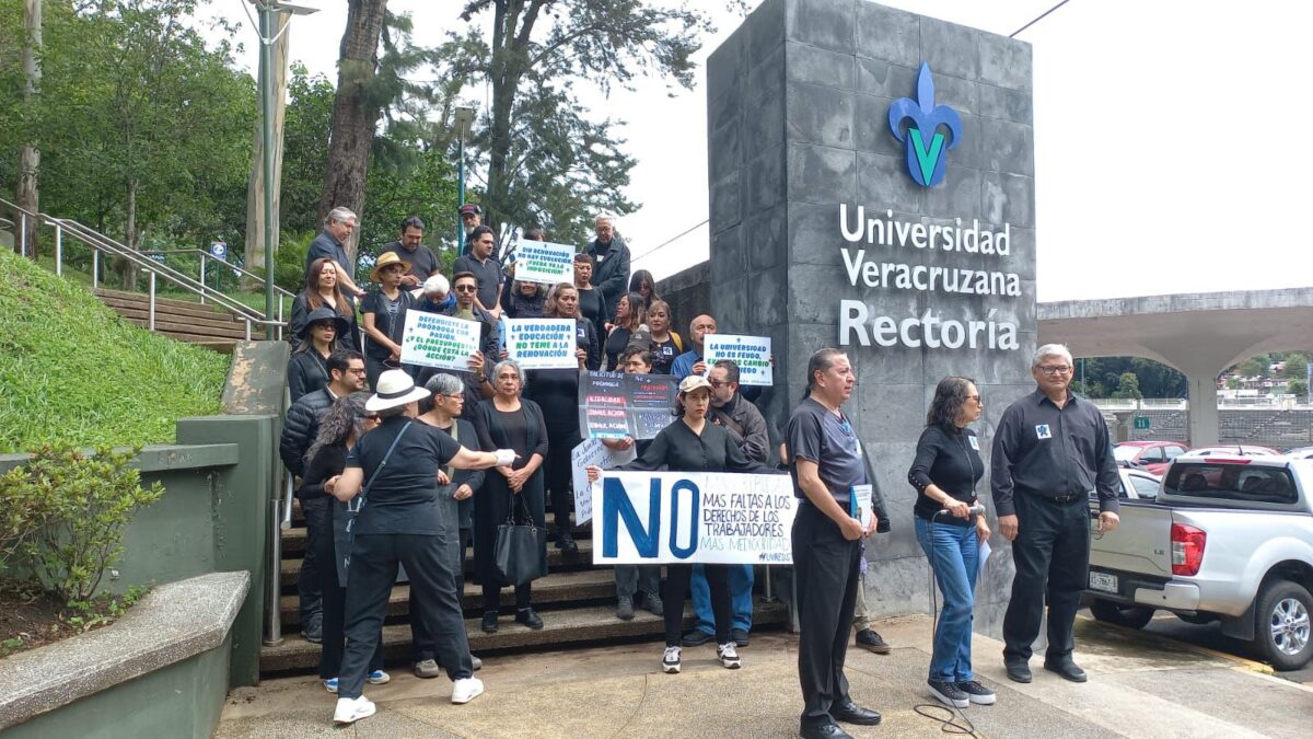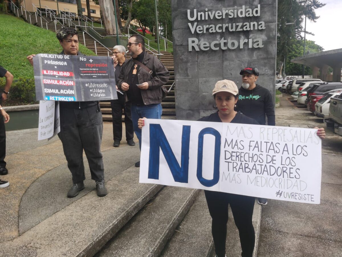 Realizaron una protesta catedráticos de la Universidad Veracruzana frente a Rectoría, donde se opusieron a la prórroga otorgada al rector Martín Aguilar para continuar por 4 años más al frente de la máxima casa de estudios.