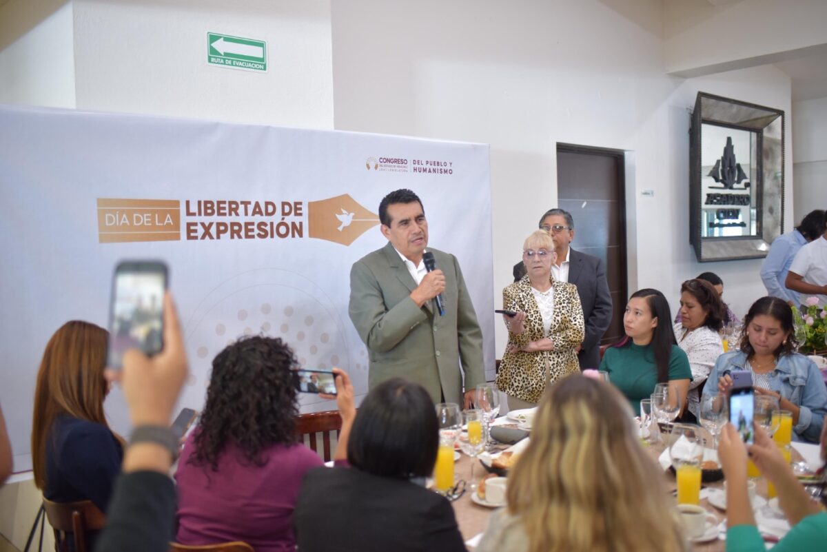 En este encuentro, organizado por la Coordinación de Comunicación Social, a cargo del periodista Esaú Valencia Heredia, el legislador subrayó que la libertad de expresión es una parte fundamental de la vida pública del país y del estado, toda vez que no puede seguirse o guiarse en un solo sentido: “Se requiere la voz crítica que nos dé su punto de vista”.