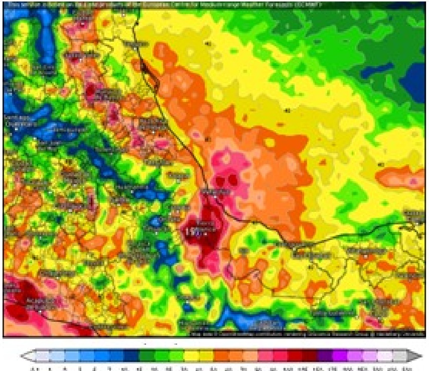Domingo 14-Lunes 15: aumenta ligeramente el potencial de lluvias y tormentas. Acumulados de 5 a 20 mm en promedio en el estado con máximos de 30 a 50 mm en las regiones montañosas y zona sur, sin descartar mayores. Viento del Norte y Noreste de 20 a 35 km/h y mayores en áreas de tormentas. Los valores de la temperatura máxima aumentan ligeramente en comparación al día anterior. Oleaje de 0.5 a 1.0 metros cerca de la costa.